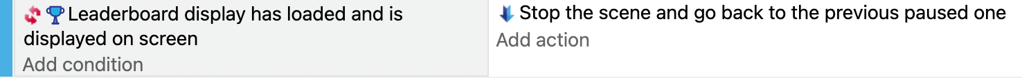 • Use the condition "Leaderboard display is loading" to trigger an action (display a text "Loading" for example)