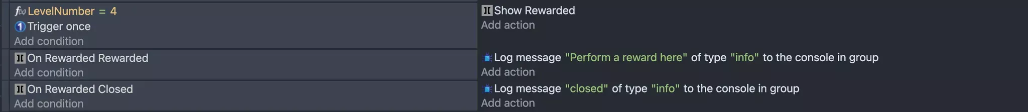Once the extension is installed, you’ll gain access to a full suite of Conditions, Actions, and Expressions, ready to be used in your game. These powerful tools will allow you to integrate monetization, data handling, and platform features seamlessly into your game development workflow.