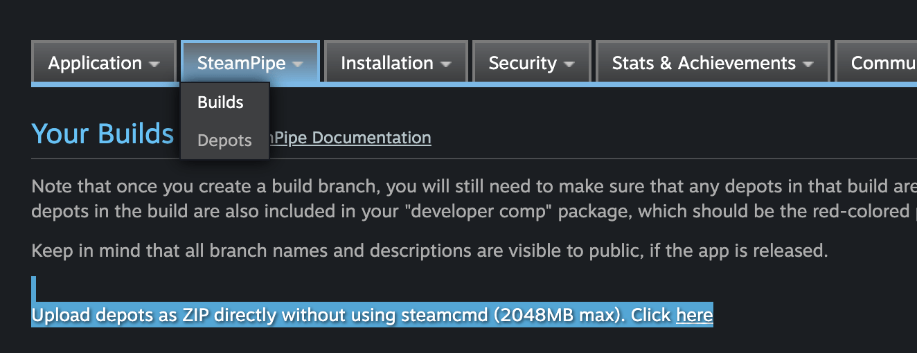 You then configure a "Build" that is using the "depots". You can use the web interface to upload the zip files for each depot: